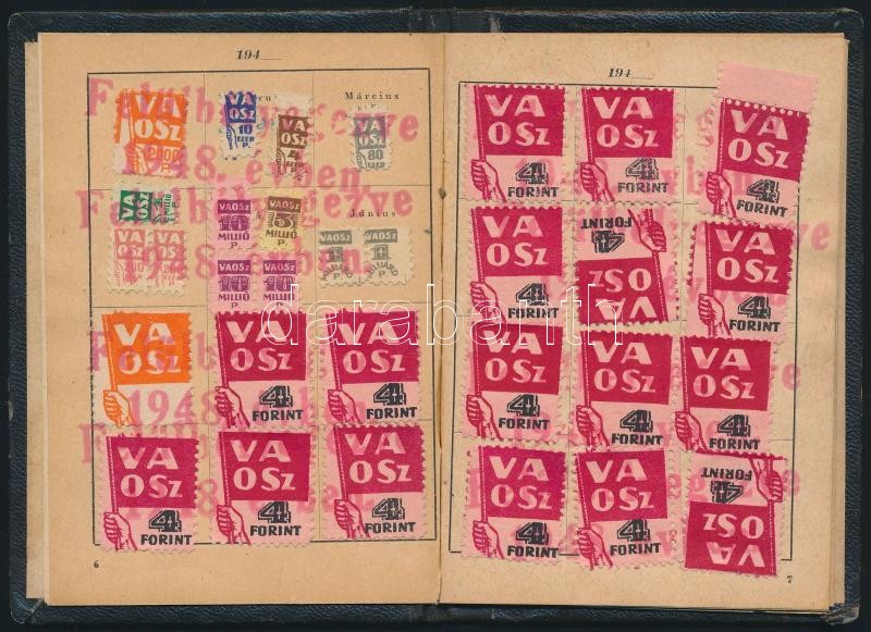 cca 1940 a Városi, vármegyei és községi alkalmazottak Országos Szövetsége tagsági könyve 39 db tagsági bélyeggel