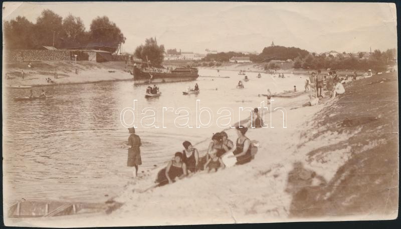 1924 Baja, fürdőzők, fotó kis szakadással, törésnyomokkal, 8×14 cm