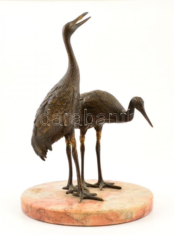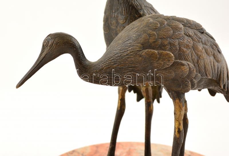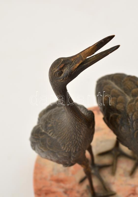 Jelzés nélkül: Réz daru pár, alabástrom talapzaton, m:21 cm