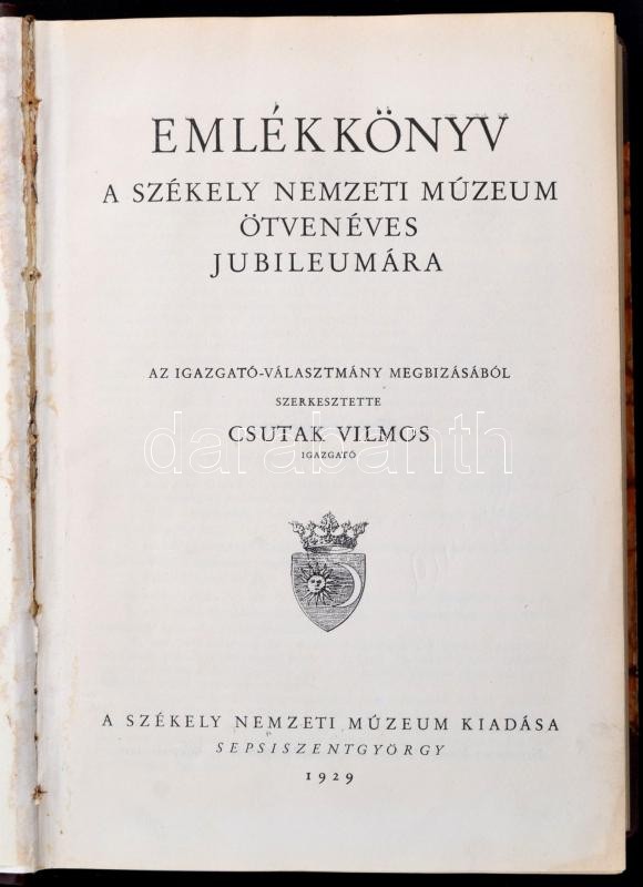 Emlékkönyv a Székely Nemzeti Múzeum ötvenéves jubileumára. Szerk.: Csu... https://www.darabanth.com/en/348-Online-auction/348.0/Books/Books-History~1500004/Emlekkonyv-a-Szekely-Nemzeti-Muzeum-otveneves-jubileumara-Szerk-Csutak-Vilmos-Sepsiszentg~II1978867