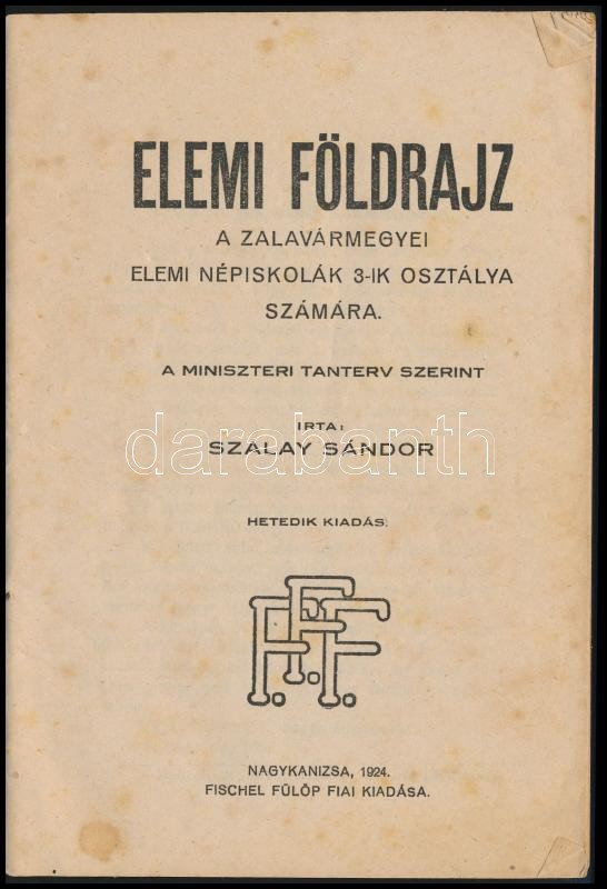Description: Elemi földrajz a zalavármegyei elemi népiskolák 3-ik osztály aszámára. Miniszteri tabterv szerint. írta: Szalay Sándor. nagykanizsa, 1924. Fischel Fülöp. 46p.