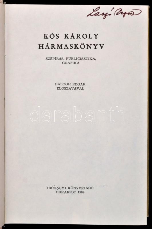 https://www.darabanth.com/en/348-Online-auction/348.0/Books/Books-Other-rarities~1500018/Kos-Karoly-Harmaskonyv-Szepiras-publicisztika-grafika-Balogh-Edgar-eloszavaval-Bukar~II1976078