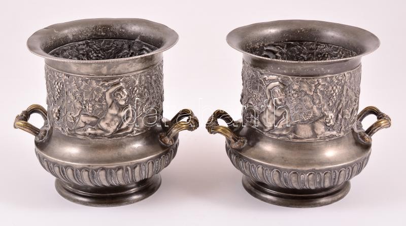 Borhűtők. 2 db jelzett ezüstözött alpakka, bacchanália jelenettel / Hallmarked alpacca wine coolers with bacchanalia scnes. d:14 cm, m:15 cm