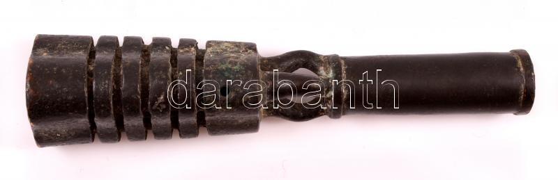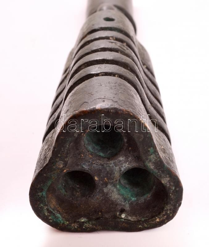 Description: XVII-XVIII. sz. Keleti, vas kézifegyver. Háromlövetű puskaszerű készítmény, melyet kézben tartva, kanóccal használtak. / Antique oriental handgun. Shoots 3 at a time. 20 cm