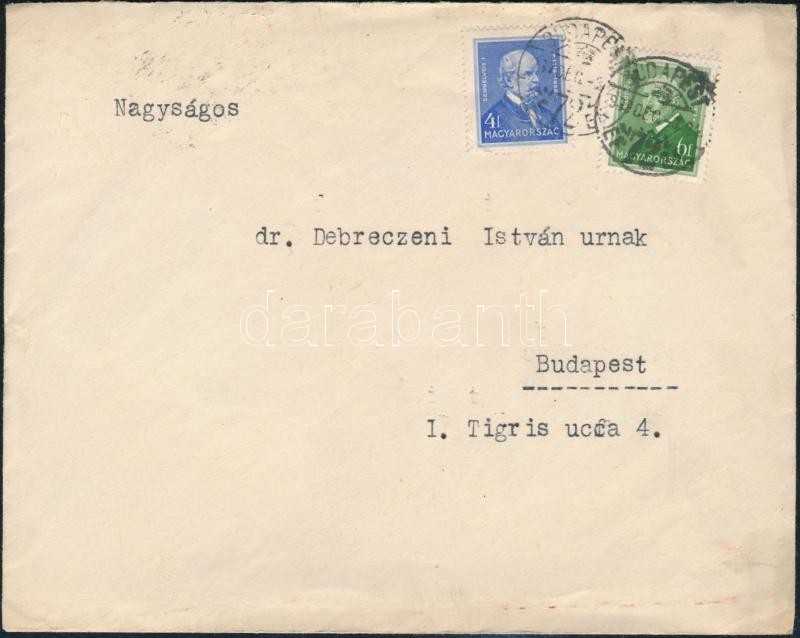 1937 Bp., viski Illés József jogász gépelt, aláírt gratulálólevele Debreczeni Istvánnak utóbbi házassága alkalmából, fejléces papíron, borítékkal