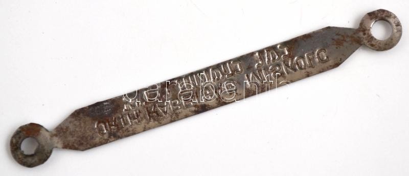 cca 1930 Kóserságot igazoló fémpánt, "Orthodox Rabbiság Miskolc" felirattal, magyar és héber nyelven, 6×0,5 cm