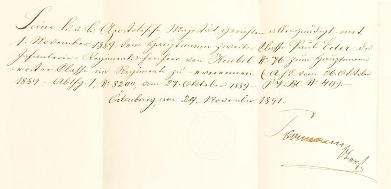 1887 Wien(Bécs), Katonai kinevezés százados számára