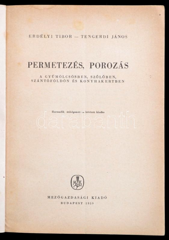 3 db kertészeti könyv: Mohácsy-Maliga: Az őszibarack. Bp., 1967. Mezőgazdasági. Nővényvédelmi útmutató. Bp., 1958. Mezőgazdasági. Erdélyi-Tengerdi: Permetezés, porozás. Bp., 1959. Mezőgazdasági.