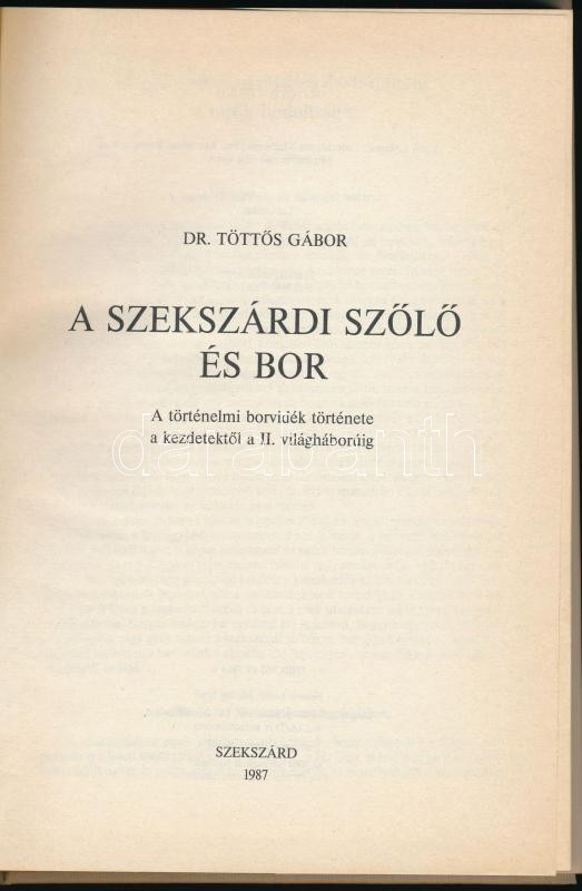 Dr. Töttős Gábor: A szekszárdi szőlő és bor. A történelmi bordvidék tö... https://www.darabanth.com/en/349-Online-auction/349.0/Books/Books-Gastronomy-and-Gardening~1500007/Dr-Tottos-Gabor-A-szekszardi-szolo-es-bor-A-tortenelmi-bordvidek-tortenete-a-kezdetek~II1981541