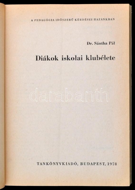 https://www.darabanth.com/en/349-Online-auction/349.0/Books/Books-Other-rarities~1500018/Dr-Santha-Pal-Diakok-iskolai-klubelete-Pedagogia-Idoszeru-kerdesei-Bp-1978-Tankonyvk~II1972580