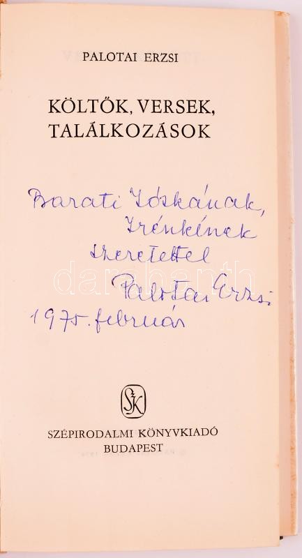 https://www.darabanth.com/en/349-Online-auction/349.0/Books/Books-Other-rarities~1500018/Palotai-Erzsi-Koltok-versek-talalkozasok-Bp-1974-Szepirodalmi-Kiadoi-egeszvaszon-kot~II1922310