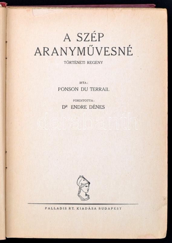 Ponson du Terrail: Egy király ifjúsága 1-7. kötet. Egy király ifjusága I-III. kötet: 1. A szép aranyművesné. 2. A navarrai herceg szerelmei. 3. A flórenci méregkeverő. A két Henrik harca I-III. kötet: 1. A négy alsó szövetsége. 2. A meudoni fehér ház. 3. Szent-Bertalan-éj. A Valois család tragédiája I-II. kötet: 1. Montpensier hercegnő. Fordította: Dr. Endre Dénes. Bp.,[1928],Palladis Rt., (Pallas Rt.-ny.), 255+1+296+287+320+303+271+304 p. Kiadói aranyozott díszes egészvászon-kötés, Gottermayer-kötés, festett felső lapélekkel, változó állapotban, kopott borítókkal, két kötet kivételével sérült gerincekkel, ezek közül egy kötet gerince hiányzik, az egyik kötet címlapja hiányzik, intézményi bélyegzőkkel. A 8. kötet hiányzik.