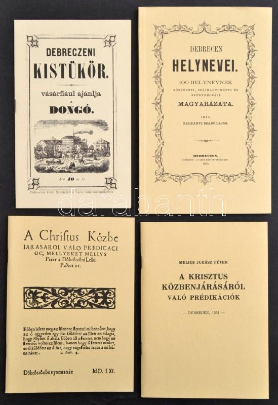 Balkányi Szabó Lajos, Melius Péter: Debrecen dícsérete. A Christus Köz... https://www.darabanth.com/en/349-Online-auction/349.0/Books/Books-Travelling-Local-History~1500001/Balkanyi-Szabo-Lajos-Melius-Peter-Debrecen-dicserete-A-Christus-Kozbejarasarol-valo-pre~II1955228