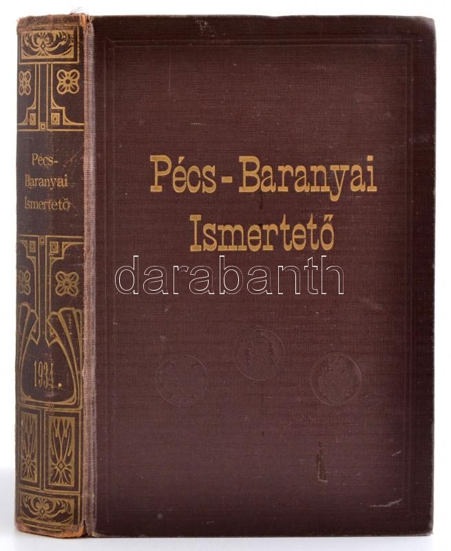 Pécs-baranyai ismertető 1934. Szerk.: Kalotai László. Pécs,(1933), Dunántúl Pécsi Egyetemi Könyvkiadó és Nyomda, 2+442 p.+ 3 t.(Kétoldalas fekete-fehér fotók.)+371+5 p. A második részben: Baranya vármegye közigazgatási beosztása. Kiadói aranyozott gerincű egészvászon-kötés, kopott gerinccel és borítóval, hiányzó címlappal, a szerkesztői előszó előtt javított kötéssel, az egyik lap szakadt, javított (15/16.)