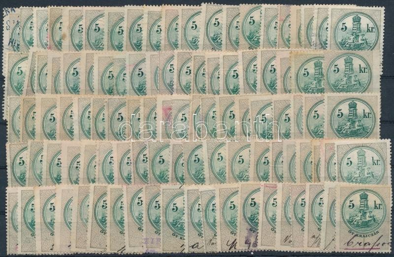 1891 100 db 5kr okmánybélyeg, eredeti hagyatékból