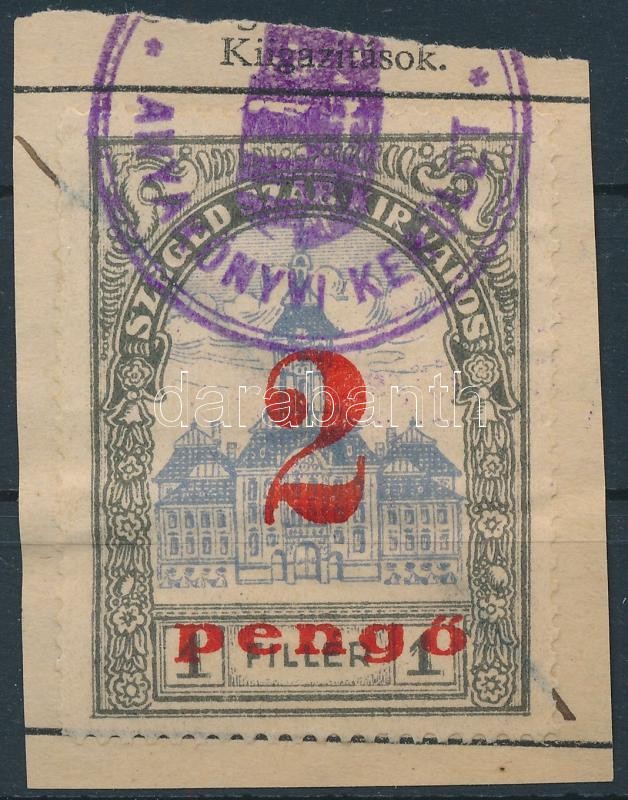 1938 Szeged városi 2P/1f illetékbélyeg kivágáson (2.500)