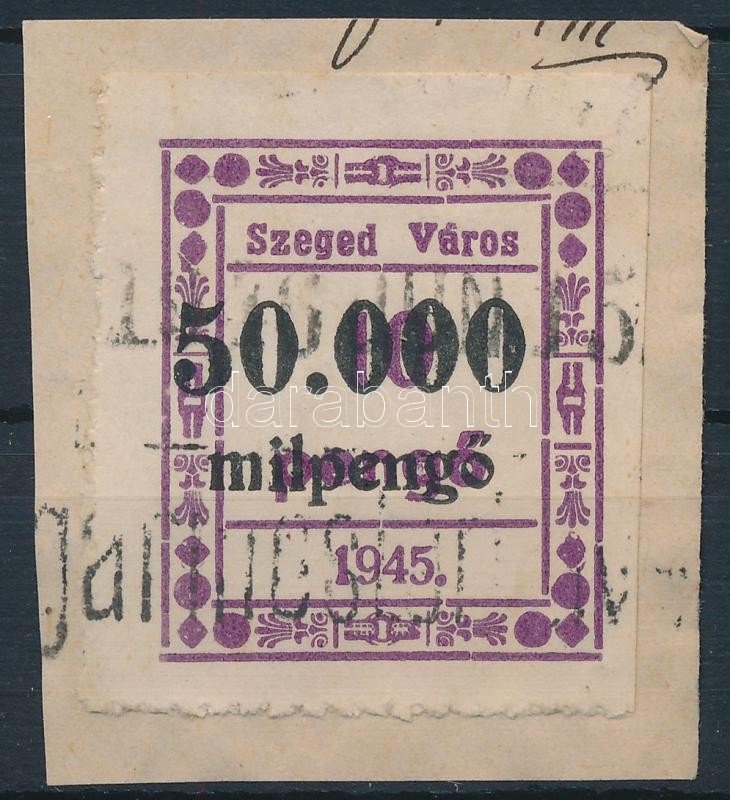 1946 Szeged városi 50.000mP/10P illetékbélyeg kivágáson (6.700)