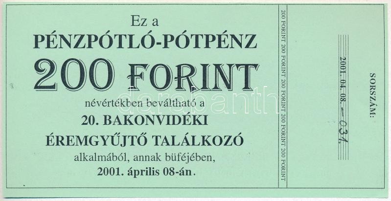 Pápa 2001. "20. Bakonyvidéki Éremgyűjtő Találkozó" 200Ft pénzpótló-pótpénz, "031" sorszámmal T:I