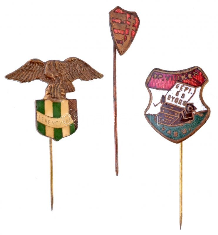 3db-os vegyes magyar kitűző tétel, közte "Ferencváros", "BP. VIII. ker. Vas u. - Gépi és Gyors" T:2,2- zománchiány