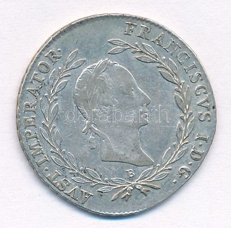 https://www.darabanth.com/en/349-Online-auction/349.0/Numismatics/Hungarian-coins-and-coins-with-Hungarian-mint-marks~1000007/1829B-20kr-Ag-I-Ferenc-6-66g-T2-Hungary-1829B-20-Kreuzer-Ag-Franz-I-6-66g-CXF-Huszar-1~II1982942