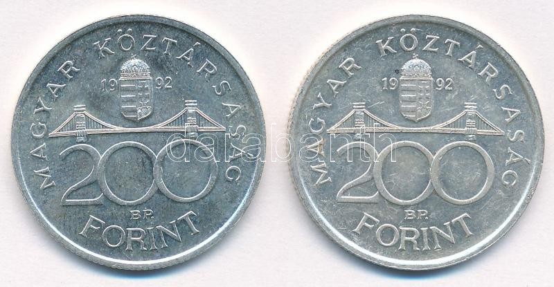 1992. 200Ft Ag "MNB" (2x) T:1-,2 Adamo F13