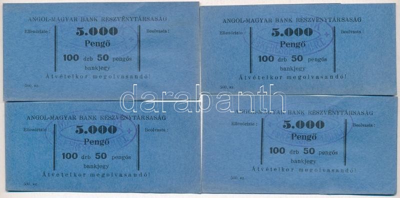 ~1930-1940. 4db bankjegy kötegelő 50 Pengős bankjegyekhez, "Magyar Bank és Kereskedelmi Rt." felülbélyegzéssel.