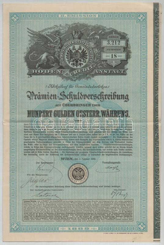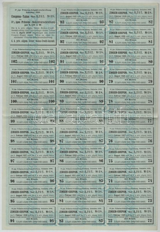 Ausztria / Bécs 1889. 3%-al kamatozó államkötvény 100G-ről, szelvények... https://www.darabanth.com/en/349-Online-auction/349.0/Numismatics/Shares-and-Tickets~1000004/Ausztria-Becs-1889-3-al-kamatozo-allamkotveny-100G-rol-szelvenyekkel-TIII-szep-papir-~II1980836