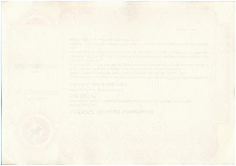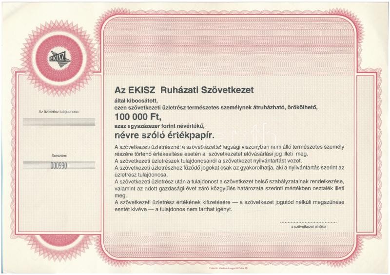 DN "EKISZ Ruházati Szövetkezet" - 100.000 Ft. névre szóló ér...