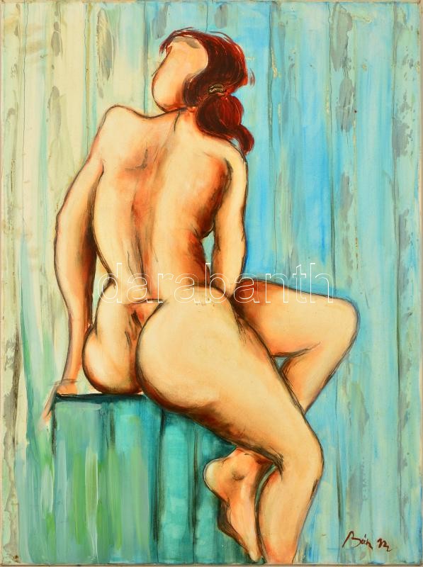 Bán jelzéssel: Ülő akt. Olaj, vászon, 75×55 cm