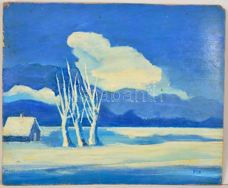 Mohy jelzéssel: Téli táj. Olaj, farost, 61×75 cm