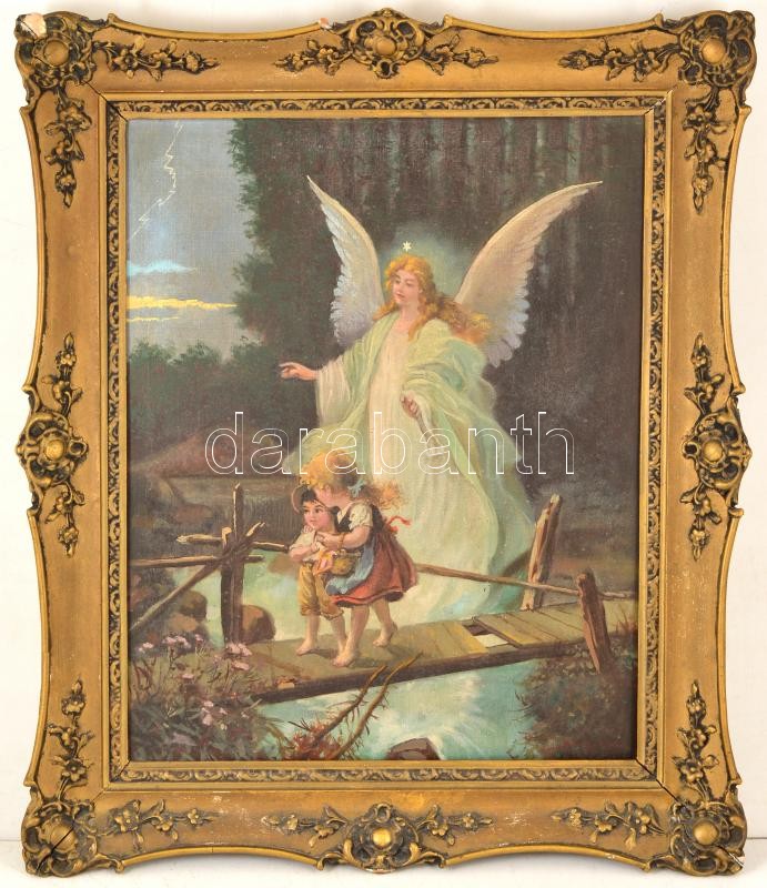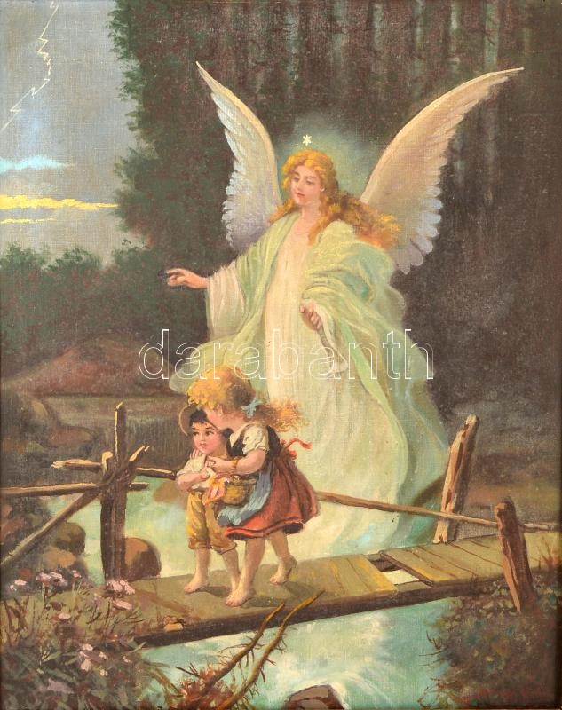 Somogyi jelzéssel: Őrangyal. Olaj, vászon, sérült keretben, 50×40 cm
