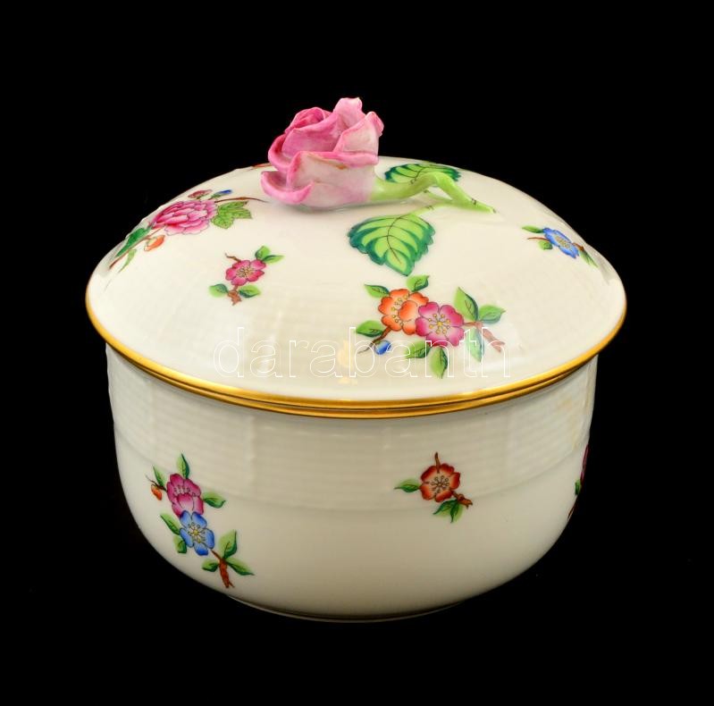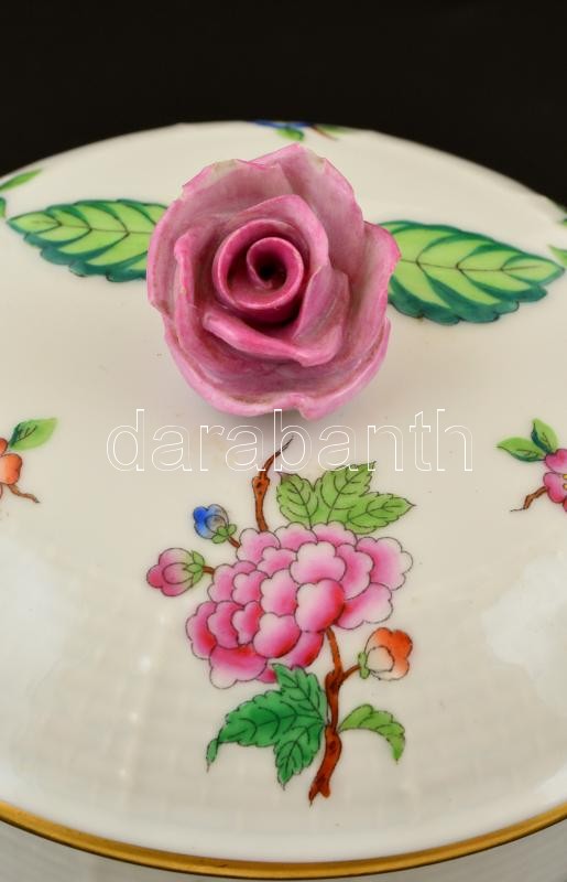 Herendi Eton mintás bonbonier, kézzel festett, jelzett, apró kopásokkal, a rózsán kis lepattanásokkal, d: 11 cm