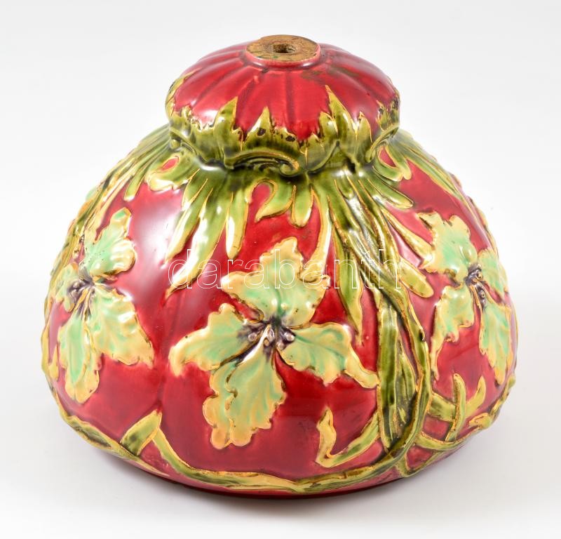 Jelzett szecessziós lámpabura, kézzel festett mázas porcelánfajansz, k...