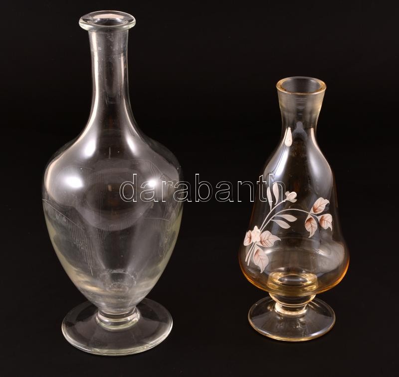 cca 1920 kiöntők ( 2db) dugó nélkül, egyik kézzel festett, hibátlan, m: 23 és 30 cm