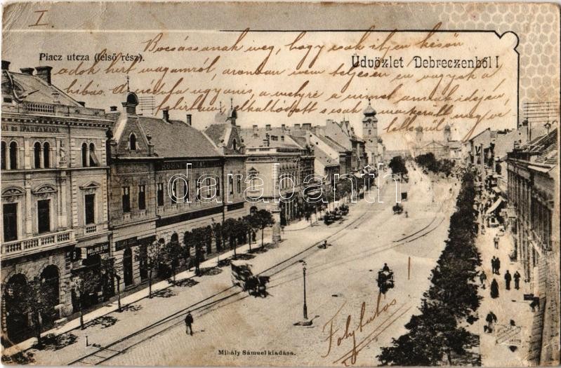 1903 Debrecen, Piac utca felső része, Rohner szálloda, üzletek, Keresk...