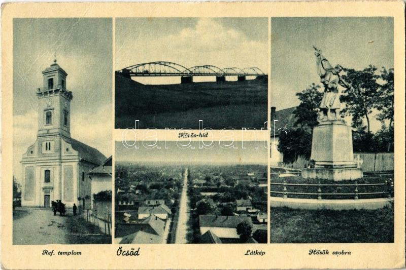 Öcsöd, Református templom, Körös híd, Hősök szobra, emlékmű (Rb)