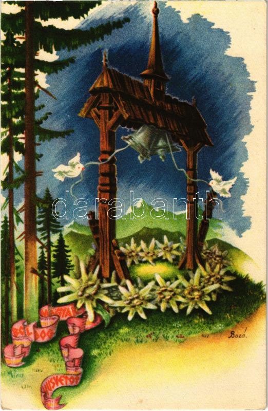 Boldog magyar húsvétot! / Hungarian irredenta Easter greeting art postcard s: Bozó (EK)