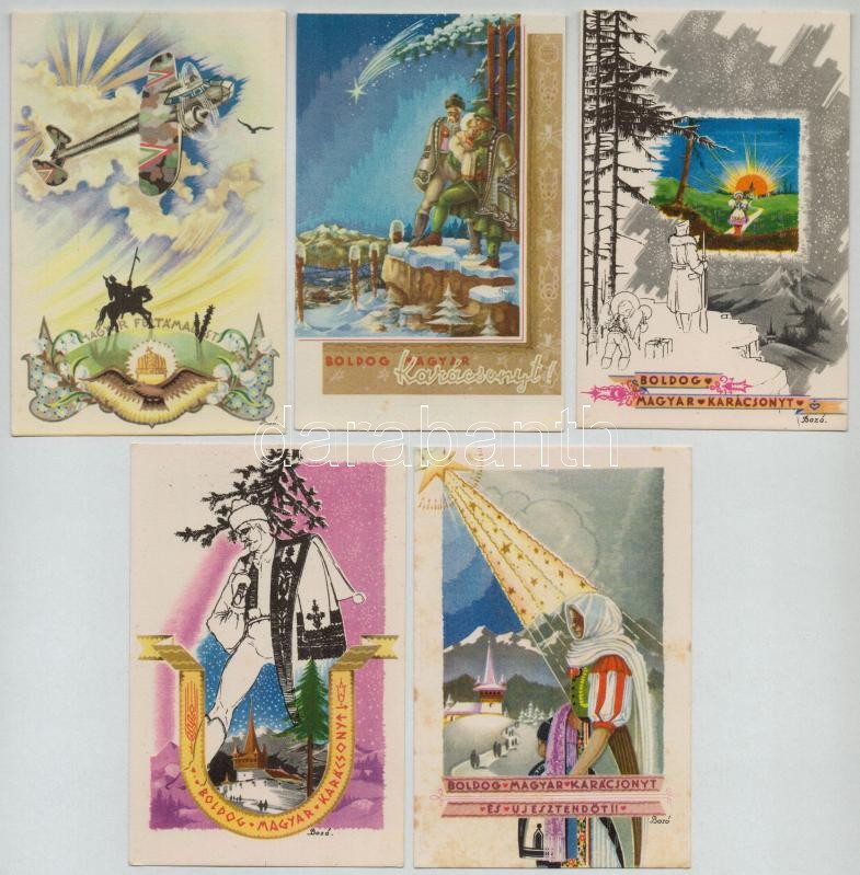 14 db RÉGI használatlan Bozó magyar irredenta üdvözlőlap / 14 pre-1945 unused Hungarian irredenta greeting art postcards signed by Bozó