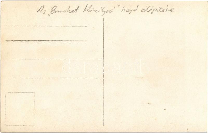 "Erzsébet királyné" gőz. kerekes személyhajó átépítése munkásokkal a fedélzeten / reconstruction of "Erzsébet királyné" Hungarian steamship. photo