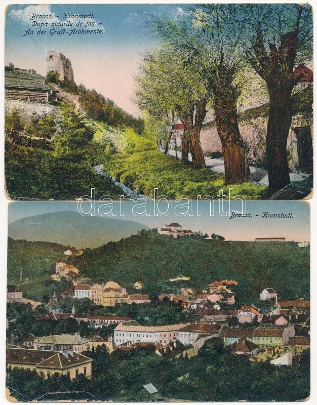 Description: Brassó, Kronstadt, Brasov; Árokmente, Fehér bástya, vendéglő, bor és sörcsarnok / An der Graft / Dupa zidurile de jos, bastion tower, beer hall and restaurant - 2 db régi képeslap / - 2 postcards