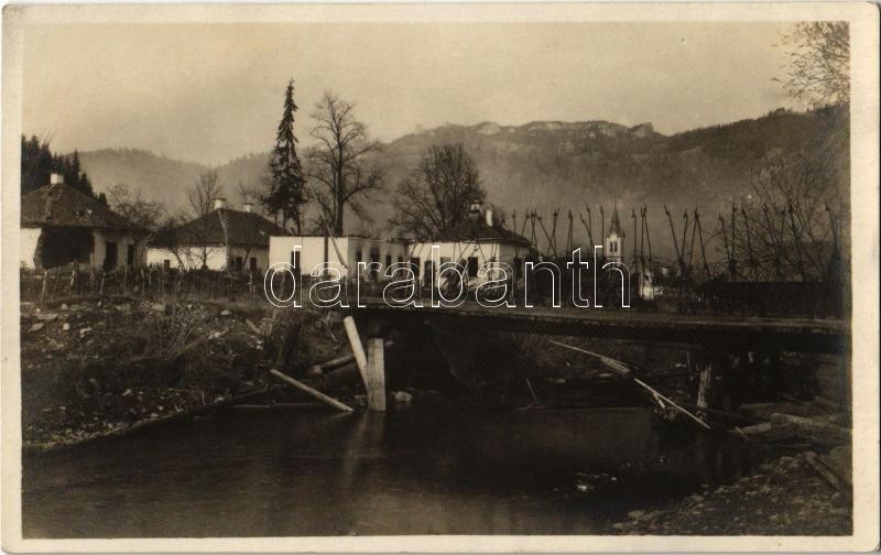 Gyergyótölgyes, Tölgyes, Tulghes; fahíd épületromokkal / wooden bridge with destroyed buildings' ruins. photo