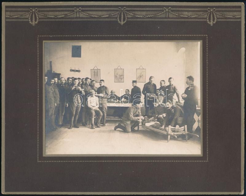 1917 A cs. és királyi 48. gyalogezred betegszobája Pilsenben, hátoldalon feliratozva, a fotón levők nevével, szép állapotban, 11,5×16 cm / 1917 Austro-Hungarian 48. infantry regiment"s sickroom in Plzeň/Pilsen, photo with description of the names on the reverse, in good condition, 11,5×16 cm