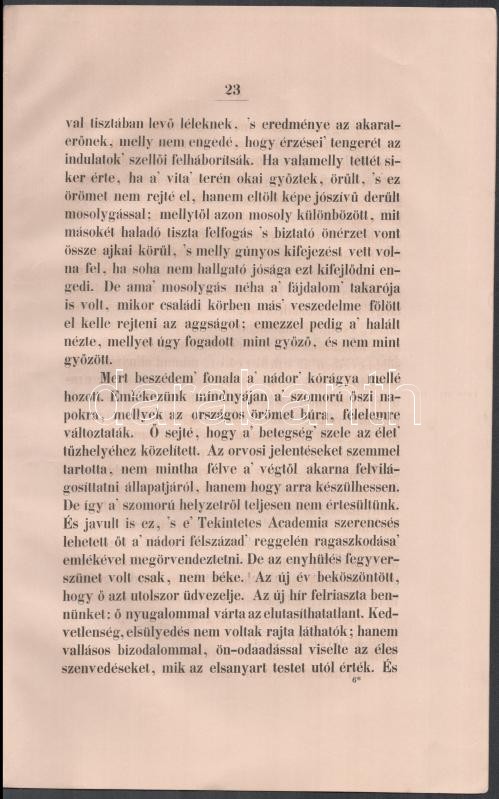 Description: 1847 Schedel Ferenc: Academiai gyász. Emlékbeszéd József főherczeg nádor magyar akadémiai pártfogó felett. Az Academia rendkívüli köz ülésében. Január XXV. MDCCCXLVII. Mondotta: D. - -titoknok. Bp., 1847, M. Kir. Egyetem betűivel, 25 p. Papírkötésben, szétvált kötéssel, az elülső borítón szélén kis hiány.