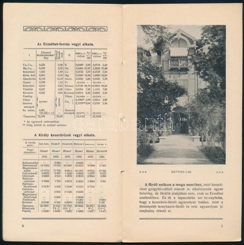 cca 1910 Bp. Kelenföld, Báró Kozmitza - ezelőtt Mattoni-féle Erzsébet királyné Sósfürdő ismertető prospektusa, 16p