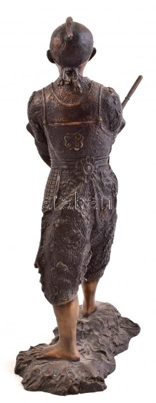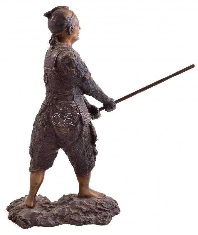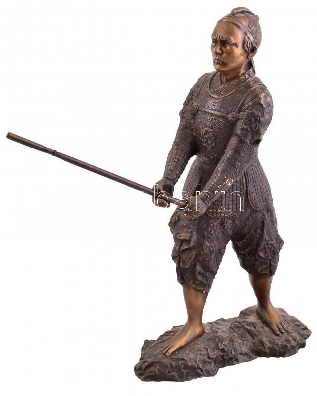 Japán bo-jutsu botvívó harcos. Bronz szobor. Jelzés nélkül. / Japanese bo-jutsu fighter. Bronze. Without mark. 41 cm