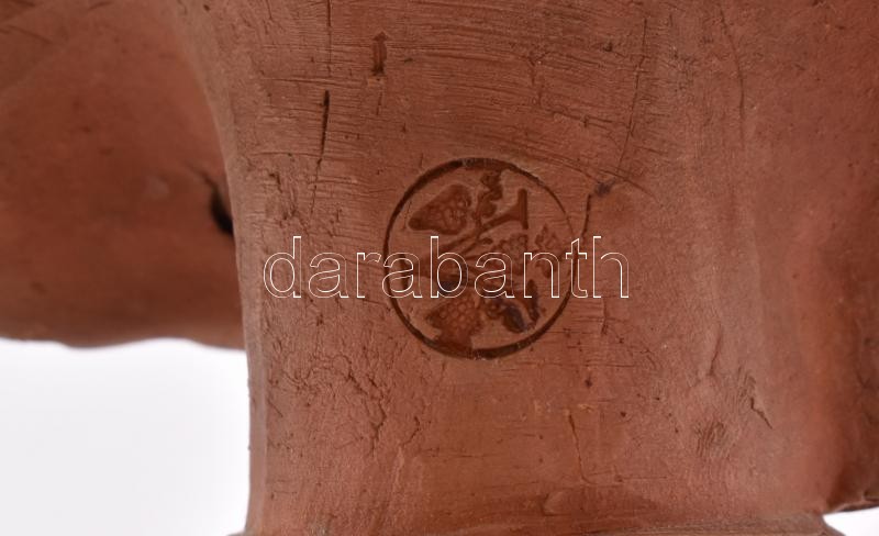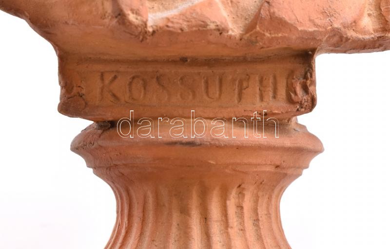 Description: Róna József: Kossuth Lajos mellszobra Terrakotta szobor. Kossuth Lajos egyetlen életében róla mintázott mellszobrának eredetijét Róna József szobrászművész 1890. évben mintázta Turin-ban vörös viaszba. Oszrágos Kossuth Szövetség, Pecséttel jelzett. 29 cm, talpán lepattanásokkal.
