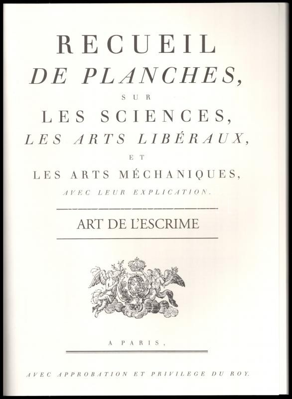 Denis Diderot - Jean Le Rond d'Alembert: Recueil de planches, sur les sciences, les arts libéraux, et les arts méchaniques, avec leur explication. Art de l'escrime. Paris, Avec approbation et privilege dur roy. 2002-es REPRINT kiadás. Kiadói papírkötés, jó állapotban / REPRINT, paperback, good condition