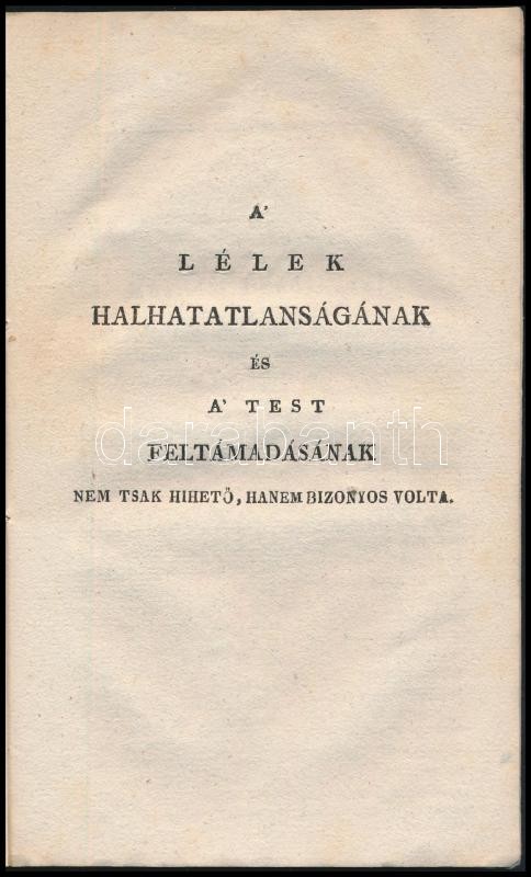 [Báthory Gábor (1755-1842)]: Lehet-é? van-é? Egyedül idvezítő ekklésia. Ha lehet 's van, hol van? mellyik az? / A Lélek halhatatlanságának és a' test feltámadásának nem tsak hihető, hanem bizonyos volta. [Pest, 1822, Trattner], 43 p. Papírkötésben, címlap nélkül, kissé szakadt borítóval. Szilágyi Sándor (1827-1899) történész névbélyegzőjével. Szilágyi Sándor a Nagykőrösi Református Kollégium tanára, és e mellett egy ideig Báthory Gábor a Dunamelléki Református Egyházkerület püspökének, a mű szerzőjének titkára is.