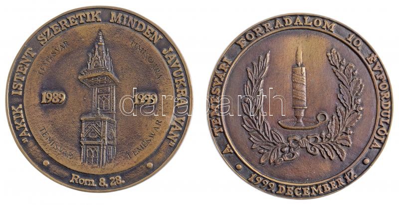 Description: 1999. "A temesvári forradalom 10. évfordulója 1999. december 17." Br emlékérem elő- és hátlapja két darabban (197g/187g/118mm) T:1- / Hungary 1999. "10th Anniversary of the Revolution of Temesvár, 17 December, 1999" obverse and reverse of Br commemorative medallion in two 2pcs (197g/187g/118mm) C:AU