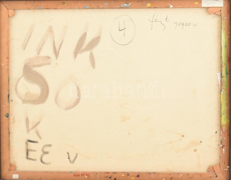 Kelemen Emil (1895-1975): Imaginárius táj. Olaj, vászon, jelzett. Hátoldalán Künstlerhaus (Bécs?) kiállítási címkével. Fa keretben, 58x73cm / Emil Kelemen (1895-1975): Imaginary landscape. Oil on canvas, signed. With Künstlerhaus (Vienna, Austria?) exhibition label on the reverse. Framed, 58x73cm